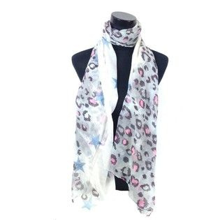 S_2375900 - MOOIE SJAAL MET PANTER PRINT EN STERREN GEBROKEN WIT/GRIJS (1st)