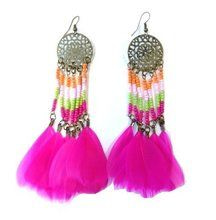 S_600031F - IBIZA LOOK OORBELLEN MET VEER EN KRAALTJES FUCHSIA (1st)