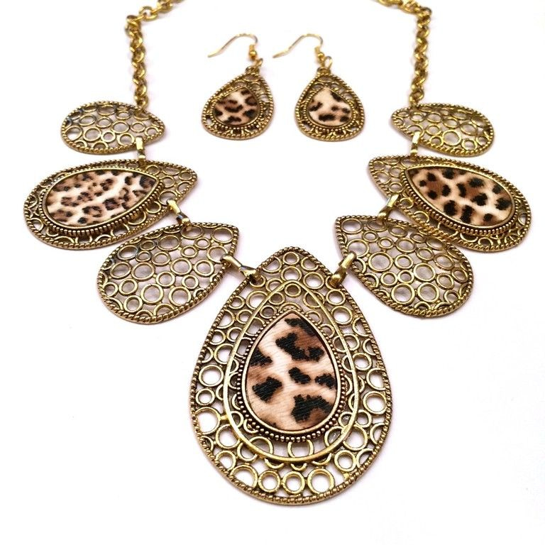 S_600131 - IBIZA LOOK HALSKETTING EN OORBELLEN MET TIJGERPRINT (1st)