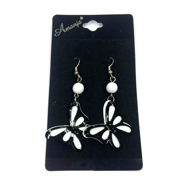 S_89869 - OORBELLEN ZWART/WIT VLINDER (12st)