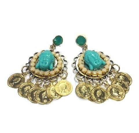 S_5668400 - IBIZA LOOK OORBELLEN TURQUOISE BUDDHA EN MUNT (1st)