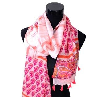S_900008A - SJAAL MET KWASTJES CRÈME/ORANJE EN FUCHSIA (1st)