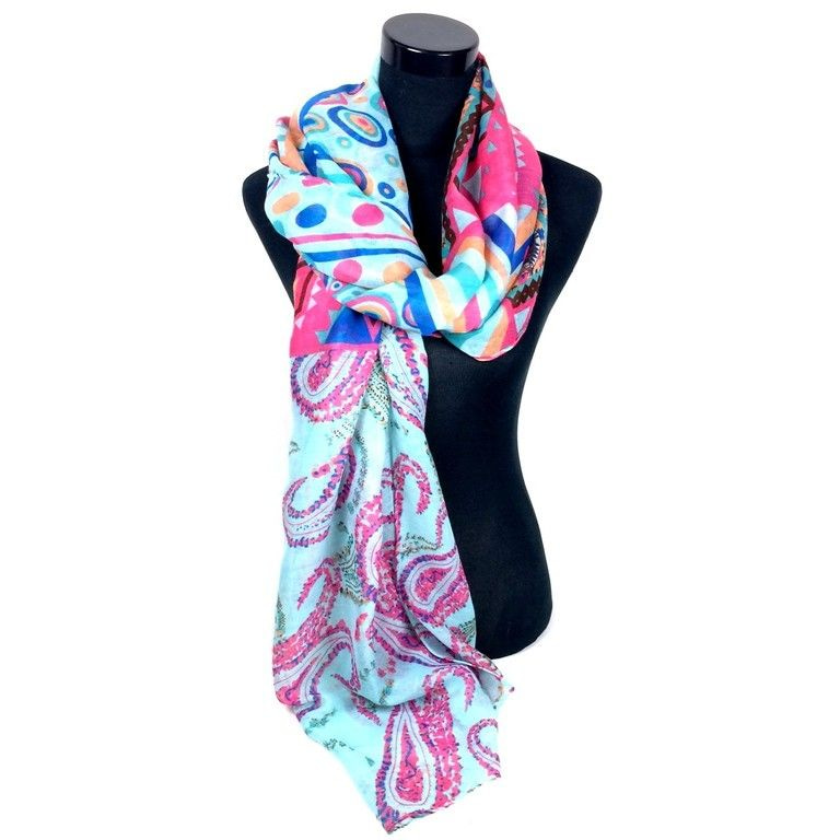 S_2454402 - SJAAL MINT GROEN MET BLAUW EN FUCHSIA (1st)