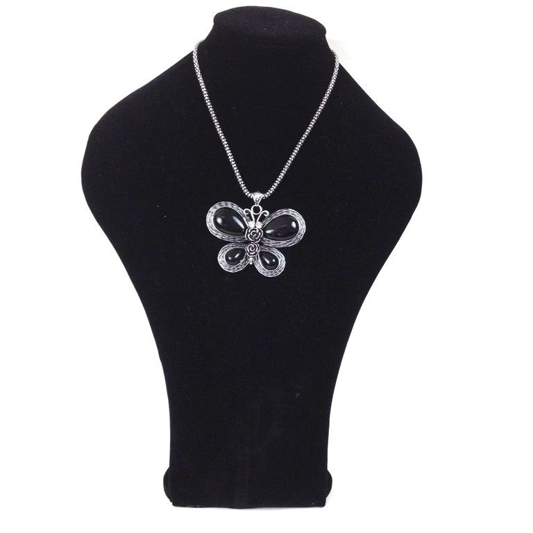 S_600430A - HALSKETTING VLINDER MET BLOEM ZWART (1st)