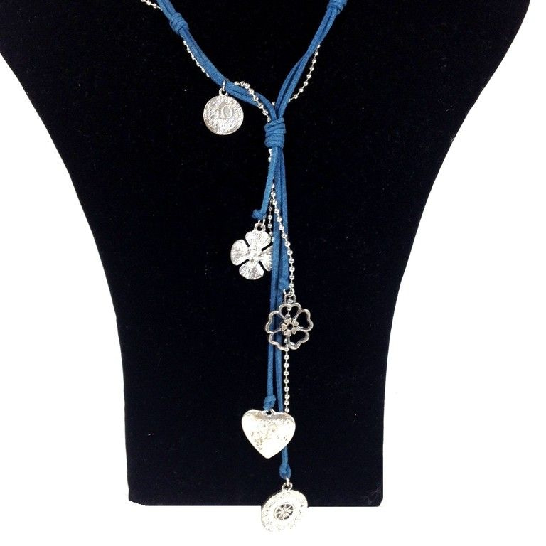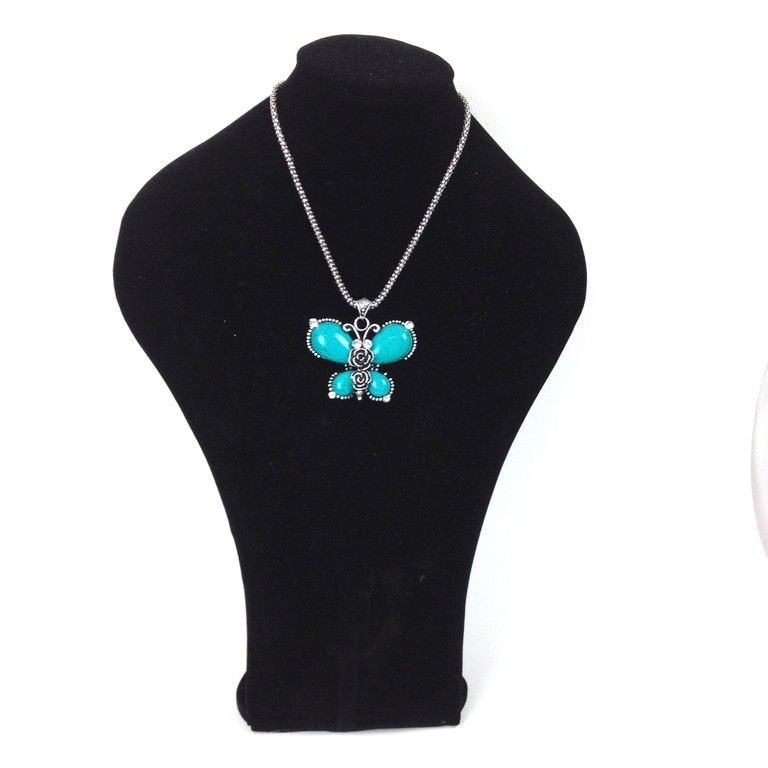 S_600430B - HALSKETTING VLINDER MET BLOEM TURQUOISE (1st)