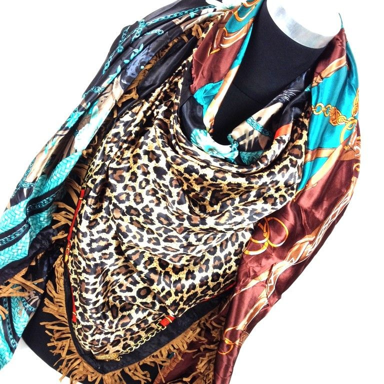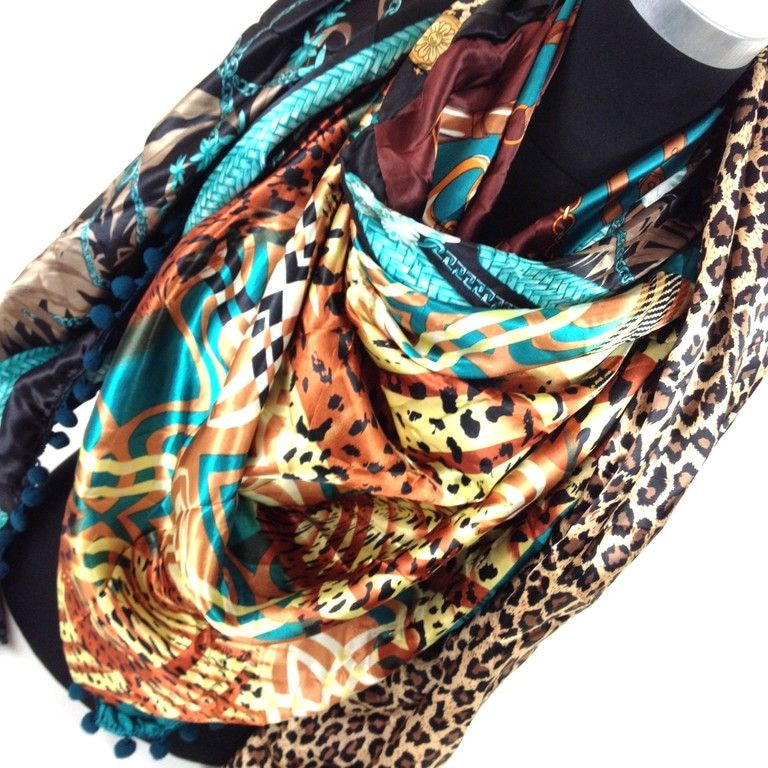 S_2149007V - LUXE DRIEHOEK SJAAL 2-ZIJDIG PETROL / TIJGER / BRUIN (1st)