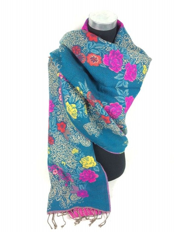 S_2104007C - LUXE SJAAL 2-ZIJDIG MINT/BLAUW/BLOEM (1st)