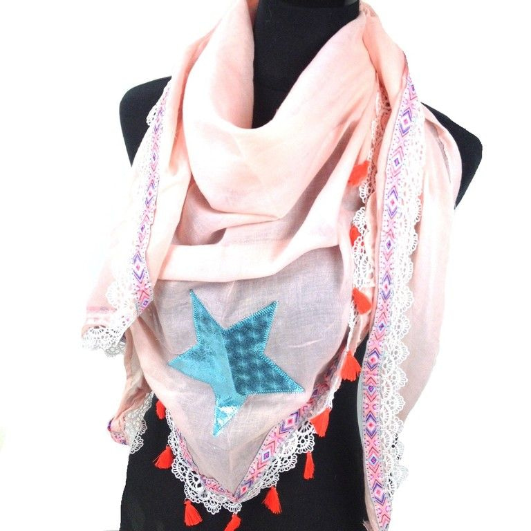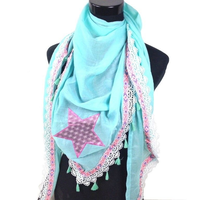 S_2395402 - SJAAL STER MET KWASTJES EN KANT MINT (1st)