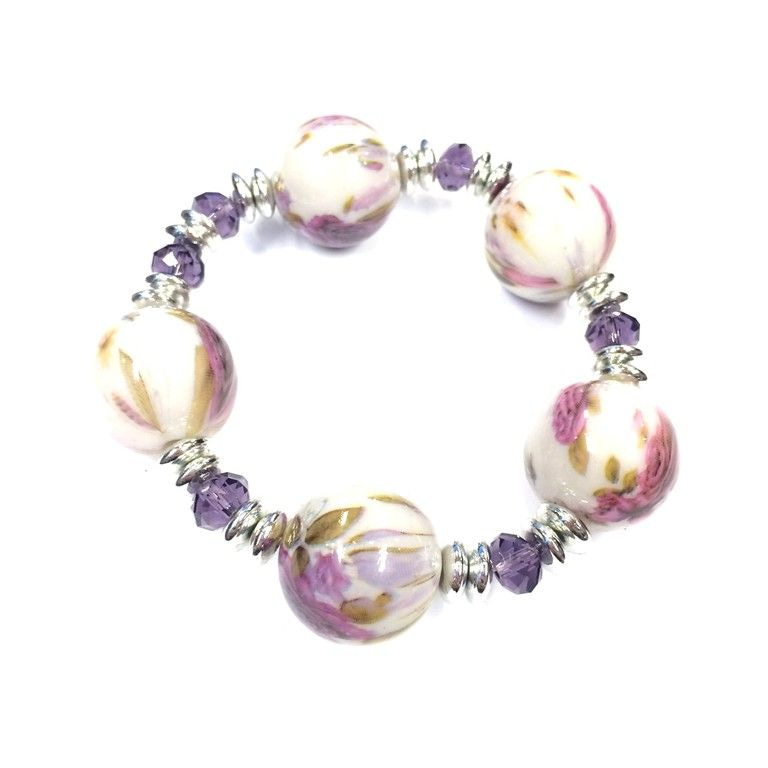 S_600402 - LUXE ARMBAND MET LILA STEEN EN STRASS (1st)