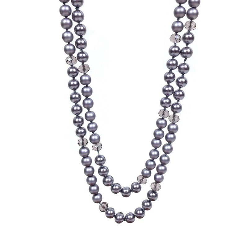 S_70212J - PAREL HALSKETTING MAT/GLANS GEBROKEN WIT / PAARS GRIJS (2st)