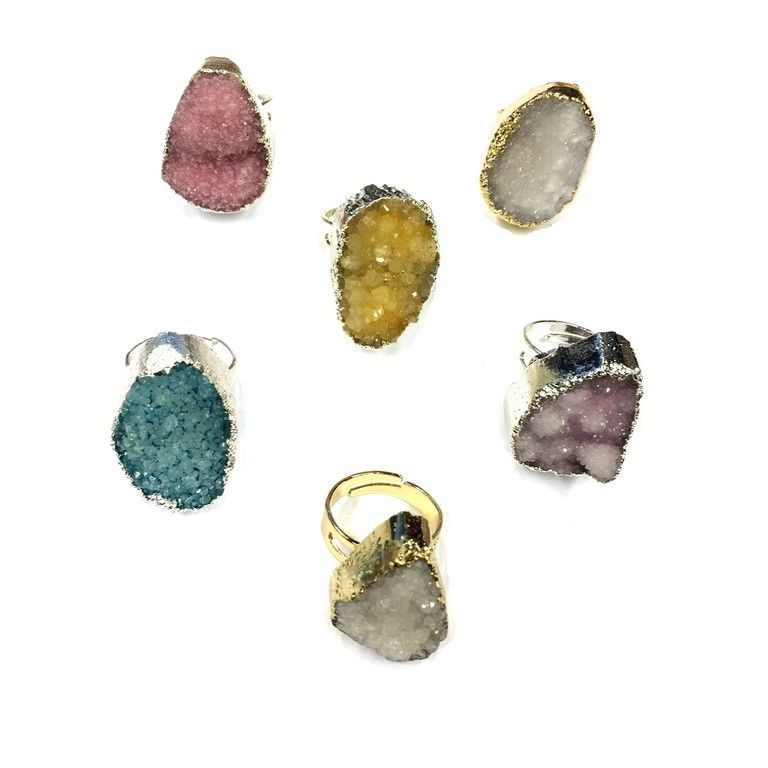 S_600493C - RINGEN NATUURSTEEN INCL.VERPAKKING BERGKRISTAL MIX KLEUREN (6st)
