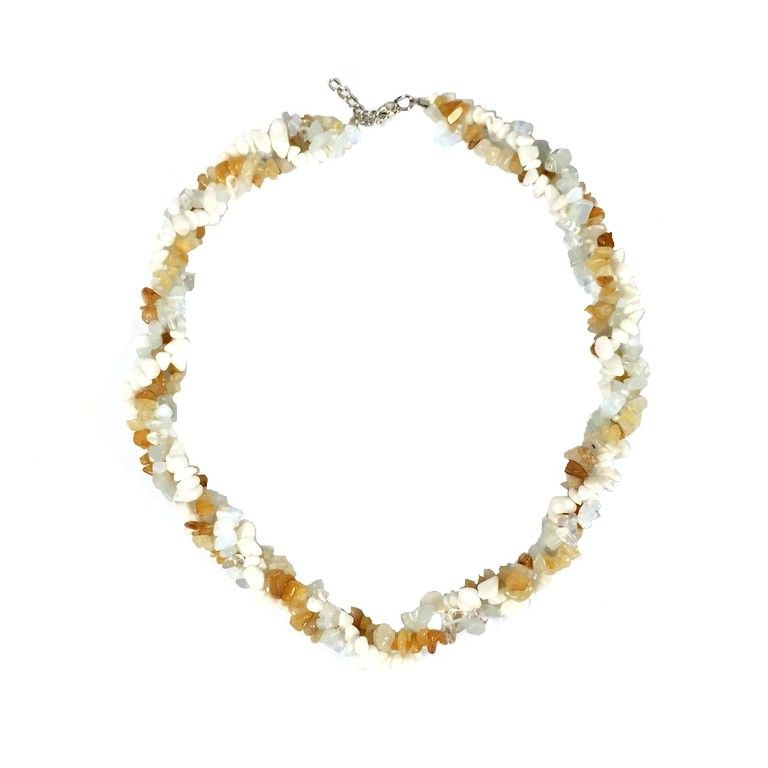 S_85234AA - HALSKETTING NATUURSTEEN - WIT/COGNAC (1st)