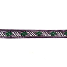 S_600536BB - SIERBAND GEWEVEN 1.8cm - RUIT ZILVER/GROEN (+/-6.40m)