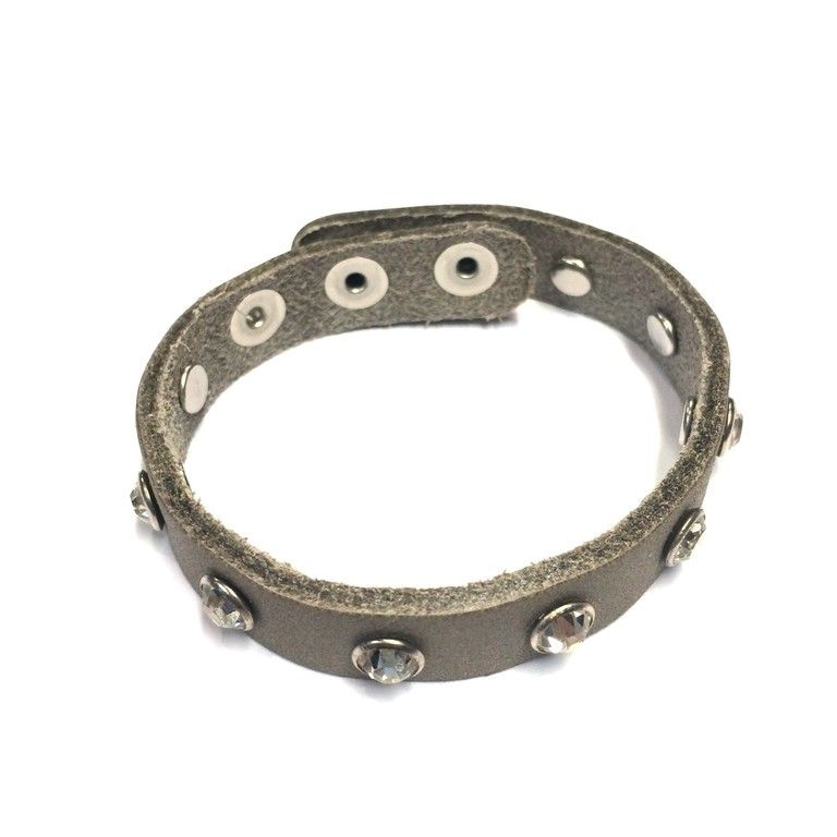 S_600485 - LEDEREN ARMBAND MET STRASS TAUPE(1st)