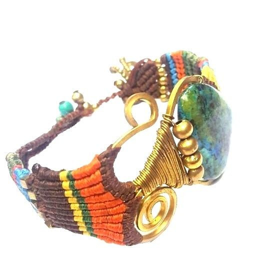 S_600200B - HANDMADE IBIZA ORIGINALS ARMBAND GREENSTONE BRUIN (1st)
