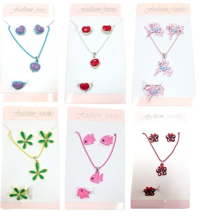 S_811820F - KINDER HALSKETTING SET MET OORBELLEN EN RING MIX (6st)