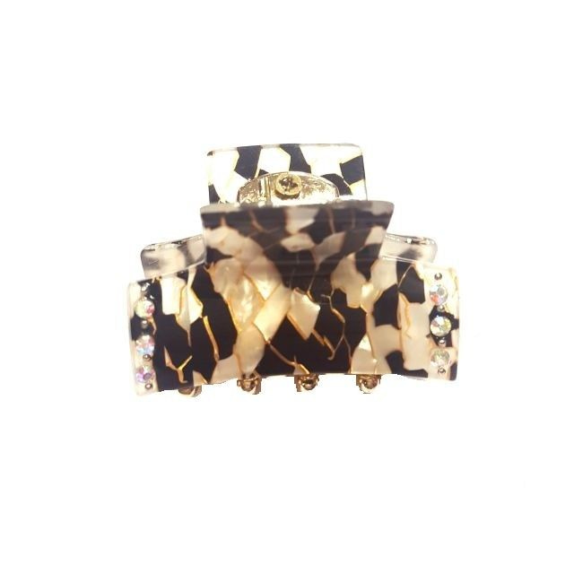 S_790423 - HAARMODE KLEM ZWART/CREME STRASS (12st)
