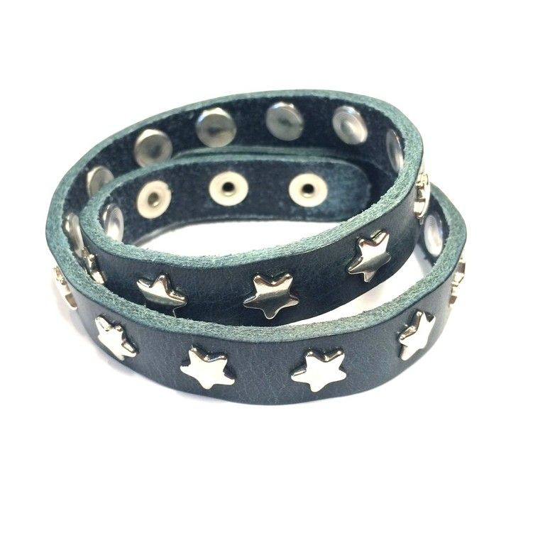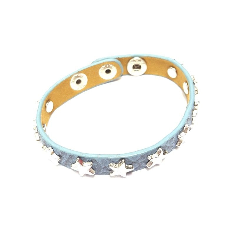 S_600479A - LEDEREN ARMBAND MET STUDS STERREN 2-DUBBEL BLAUW(1st)