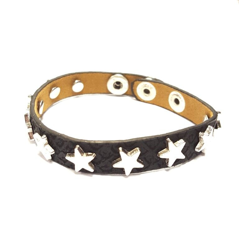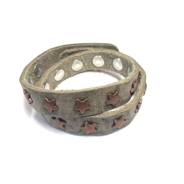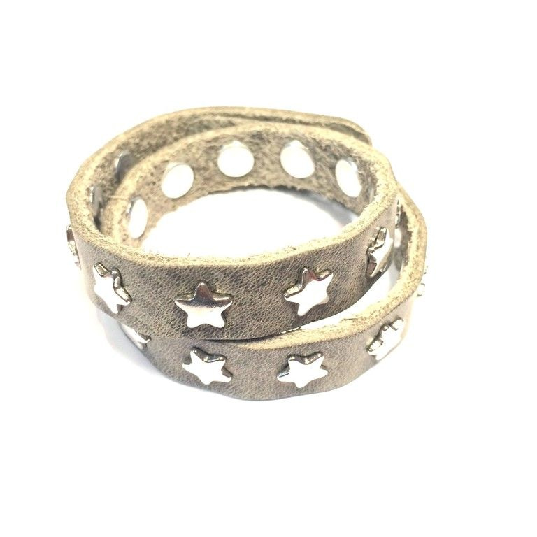 S_600479B - LEDEREN ARMBAND MET STUDS STERREN 2-DUBBELGRIJS(1st)