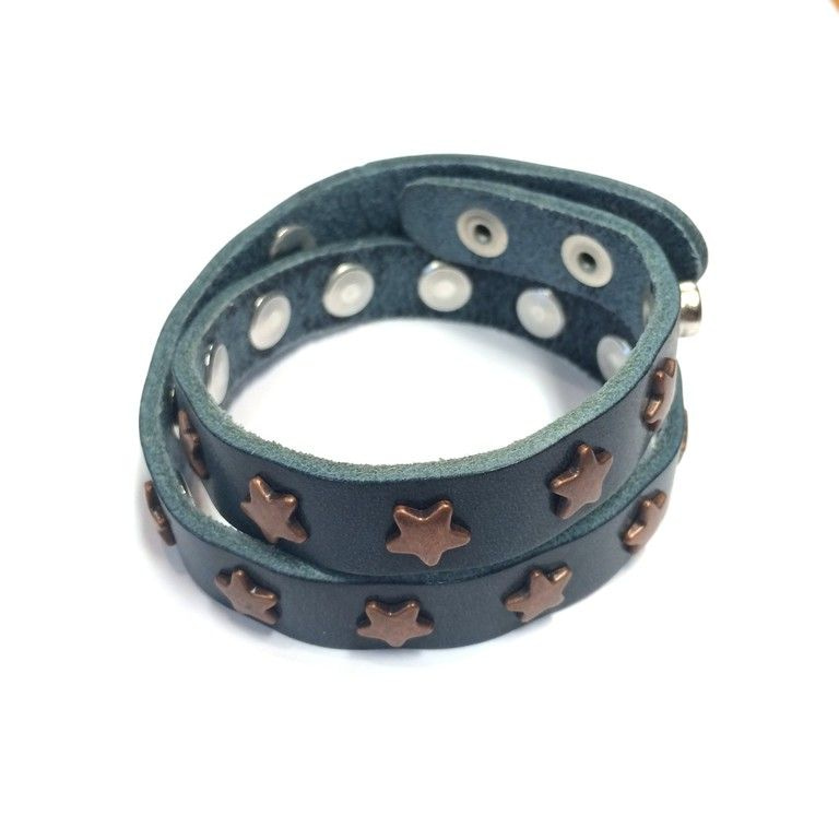 S_600480 - LEDEREN ARMBAND MET STUDS STERREN BRONS 2-DUBBEL BLAUW(1st)