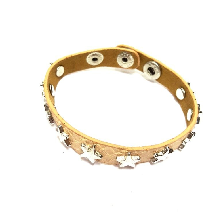 S_600479E - LEDEREN ARMBAND MET STUDS STERREN 2-DUBBEL TAUPE(1st)