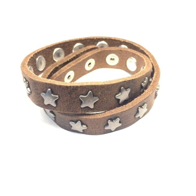 S_600479 - LEDEREN ARMBAND MET STUDS STERREN 2-DUBBEL DONKER BRUIN(1st)