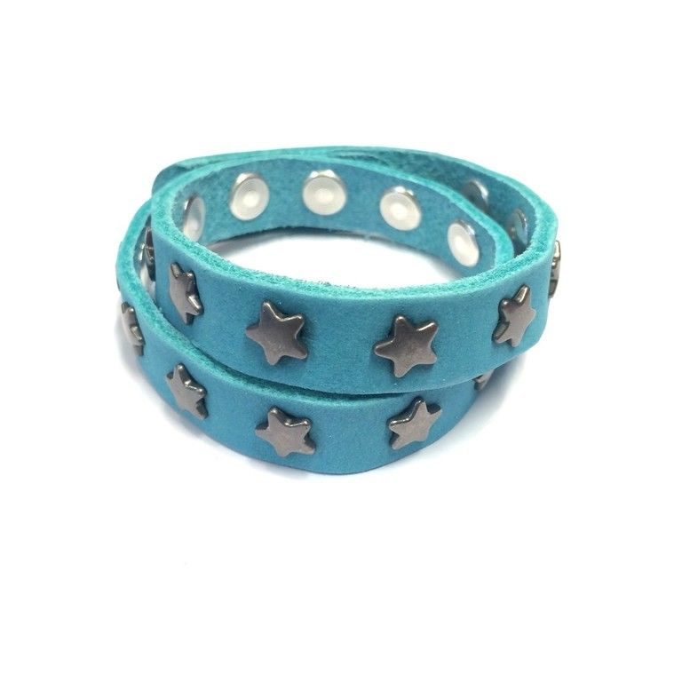 S_600479C - LEDEREN ARMBAND MET STUDS STERREN 2-DUBBEL AQUA BLAUW (1st)