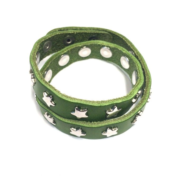 S_600479D - LEDEREN ARMBAND MET STUDS STERREN 2-DUBBEL GROEN(1st)