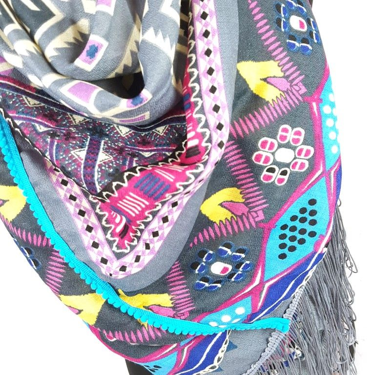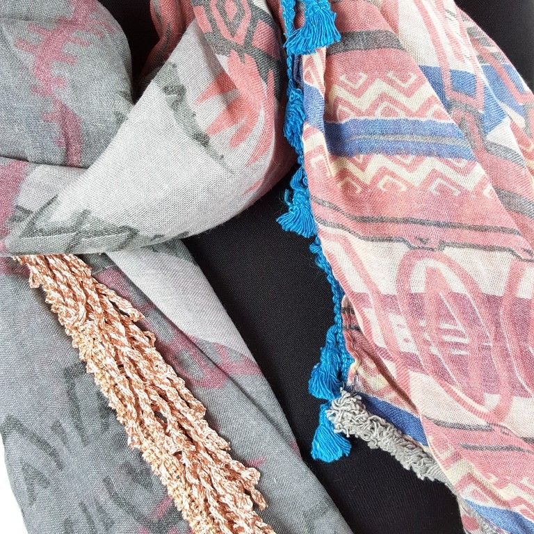 S_2543900 - MOOIE SJAAL AZTEK ZALM / GRIJS / BLAUW FRANJES (1st)