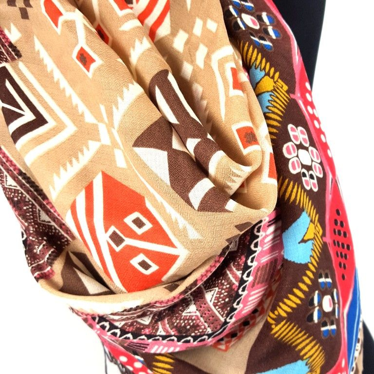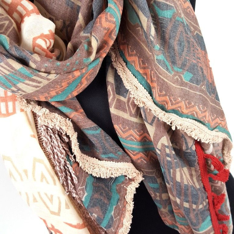 S_2546503 - DRIEHOEK SJAAL TAUPE / STEENROOD AZTEK FRANJES & KWAST (1st)