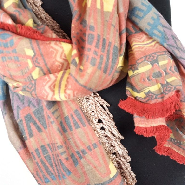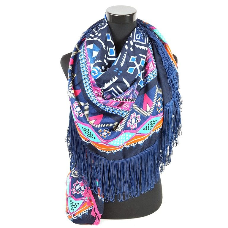 S_2543309 - MOOIE SJAAL AZTEK BLAUW / TAUPE / ORANJE FRANJES (1st)