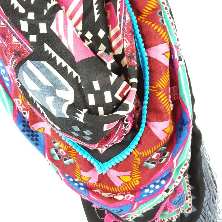 S_2546001 - DRIEHOEK SJAAL ZWART / GROEN / ROOD AZTEK FRANJES & KWAST (1st)
