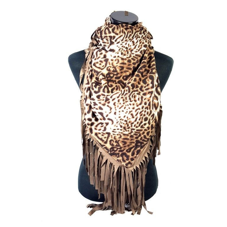 S_62153B - DRIEHOEK SJAAL BRUIN TIJGERPRINT MET FRANJES - MODEL AZTEK (1st)