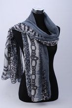 S_62153C - DRIEHOEK SJAAL GRIJS TIJGERPRINT MET FRANJES - MODEL AZTEK (1st)
