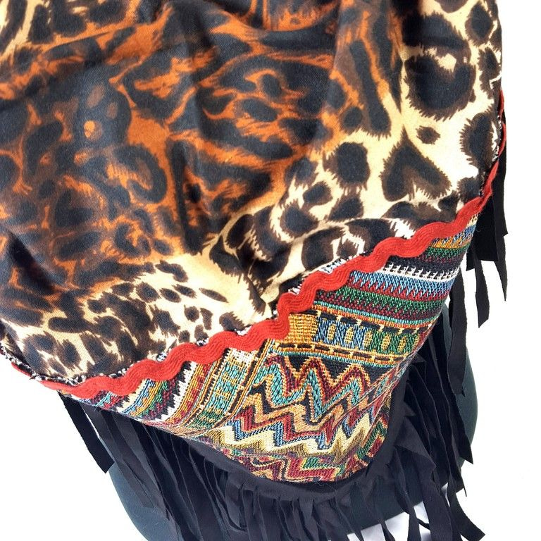 S_62153A - DRIEHOEK SJAAL ZWART/BRUIN TIJGERPRINT MET FRANJES - MODEL AZTEK (1st)