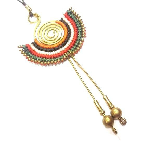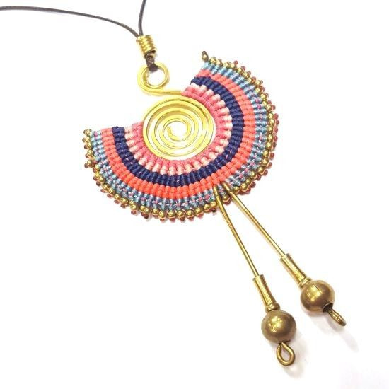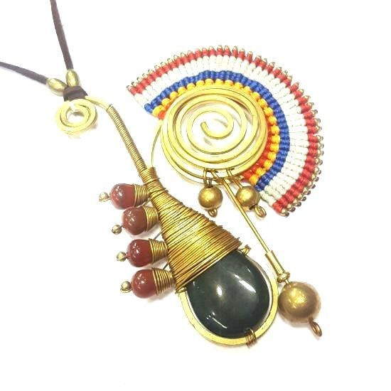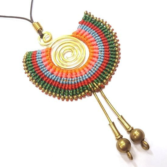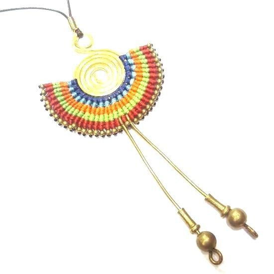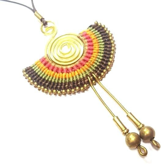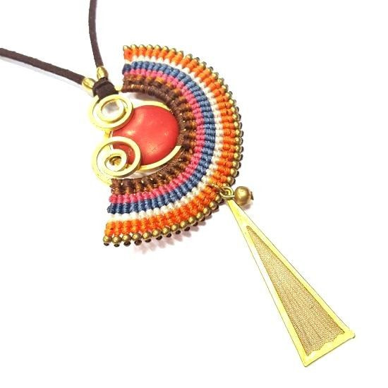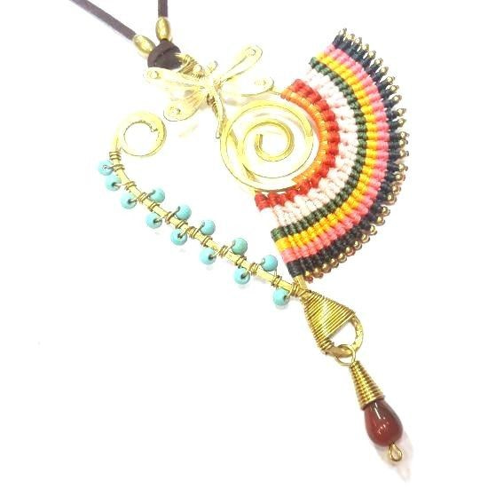 S_600232A - HANDMADE IBIZA ORIGINALS KETTING MET GREENSTONE ROOD/ORANJE (1st)