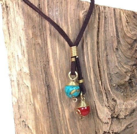S_600206C - HANDMADE IBIZA ORIGINALS KETTING MET REDSTONE ROOD/BRUIN (1st)