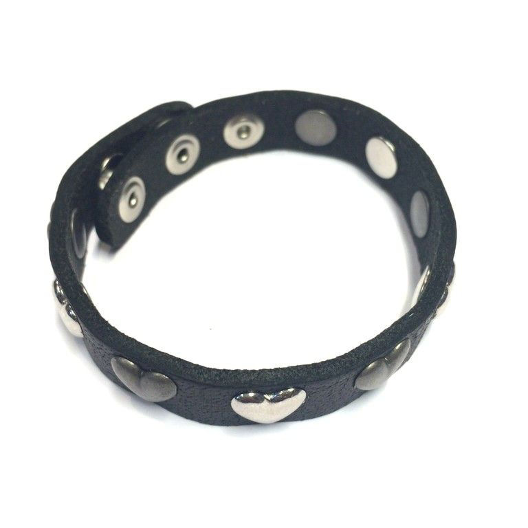 S_600487A - LEDEREN ARMBAND MET STUDS MAT/GLANS HARTEN ZWART(1st)