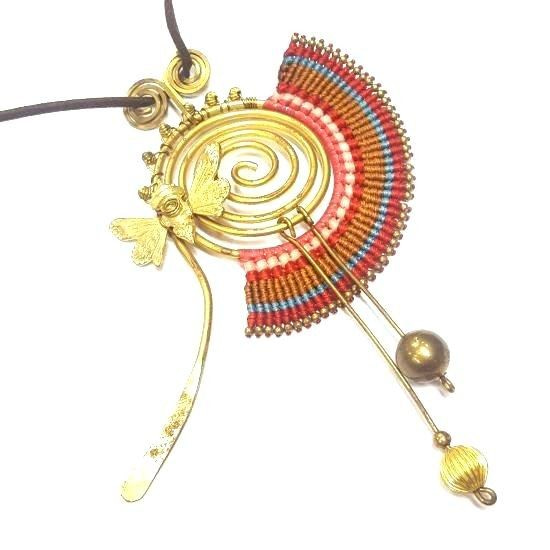 S_600214A - HANDMADE IBIZA ORIGINALS KETTING VLINDER BRUIN/ROOD (1st)
