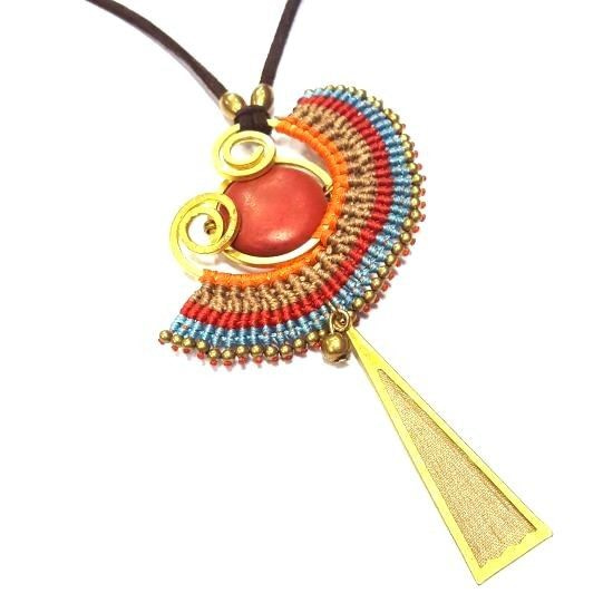 S_600208B - HANDMADE IBIZA ORIGINALS KETTING MET REDSTONE ROOD/COGNAC (1st)