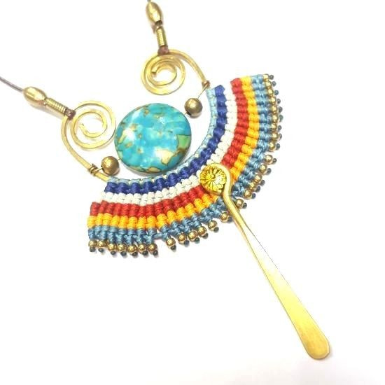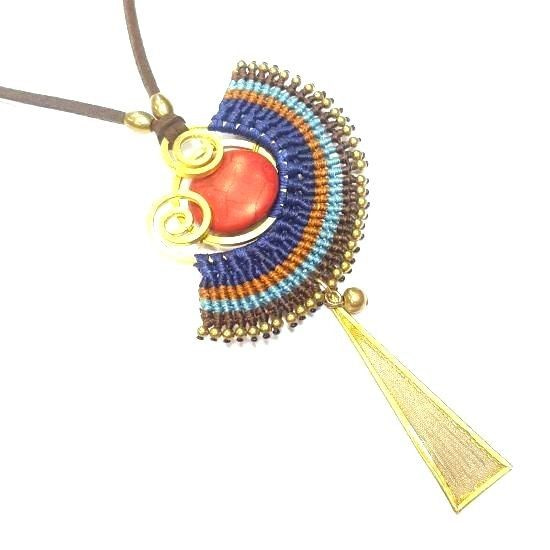 S_600206A - HANDMADE IBIZA ORIGINALS KETTING MET REDSTONE ORANJE/BLAUW (1st)
