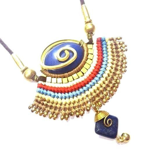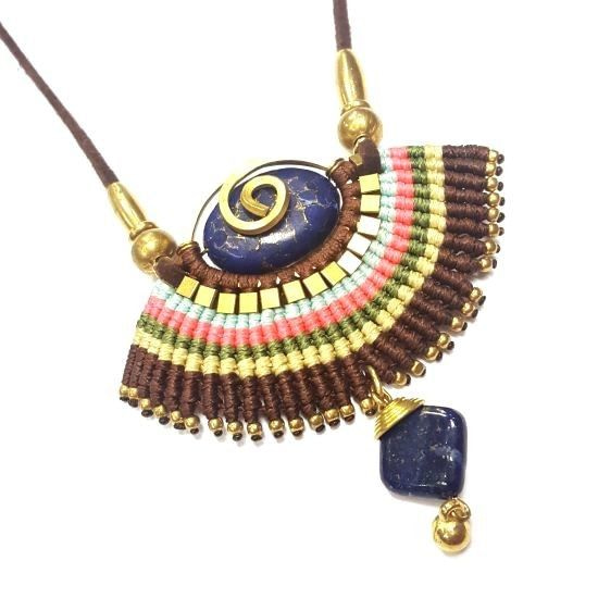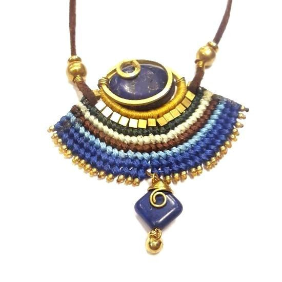 S_600206B - HANDMADE IBIZA ORIGINALS KETTING MET REDSTONE BLAUW/BRUIN (1st)