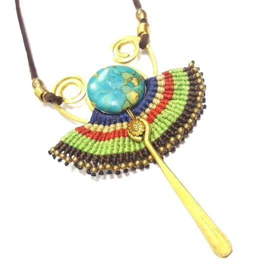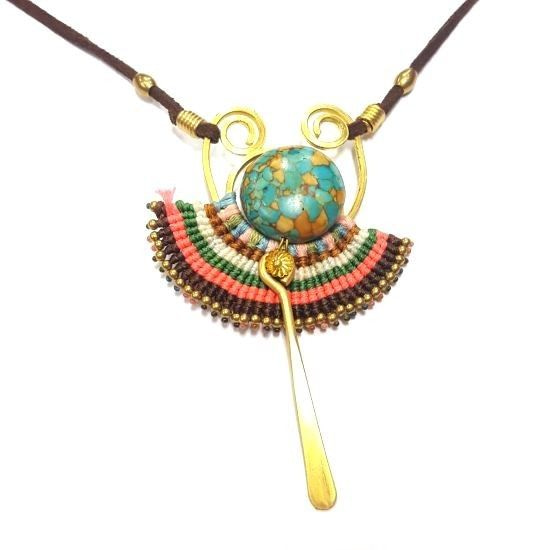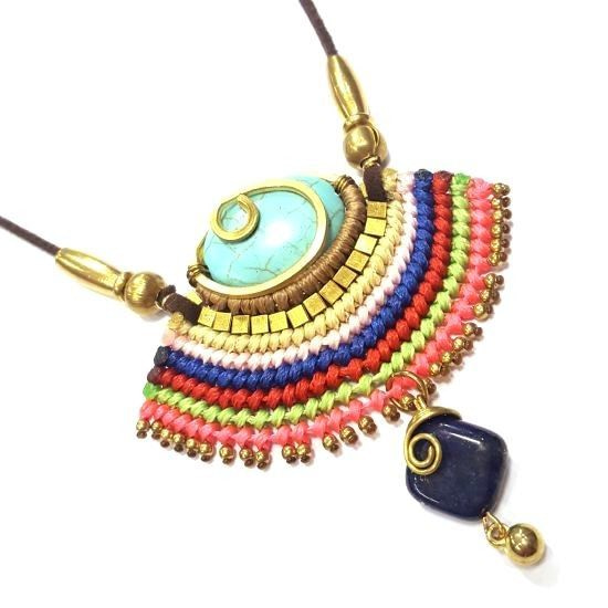S_600207D - HANDMADE IBIZA ORIGINALS KETTING BLUESTONE COGNAC/ROZE (1st)