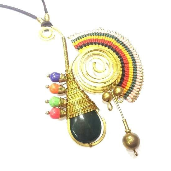 S_600232C - HANDMADE IBIZA ORIGINALS KETTING MET GREENSTONE ORANJE/GROEN (1st)