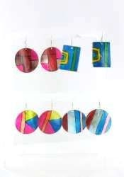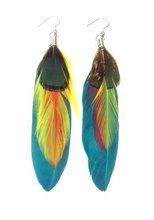 S_600037K - IBIZA LOOK OORBELLEN MET VEER PETROL/ROOD/GEEL (1st)
