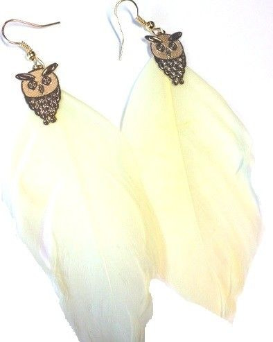 S_600121A - OORBELLEN MET UIL EN VEER GEEL (1st)