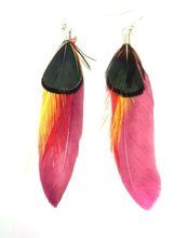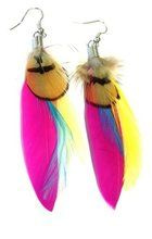S_600037S - IBIZA LOOK OORBELLEN MET VEER ROZE/ROOD/GEEL (1st)
