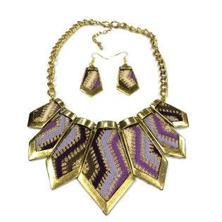 S_600499A - AZTEK HALSKETTING MET OORBELLEN BRUIN/PAARS (1st)