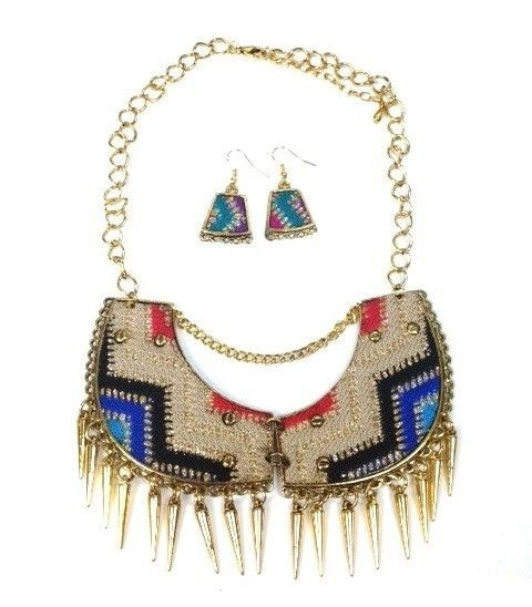 S_600143F - IBIZA LOOK HALSKETTING EN OORBELLEN GRIJS/BLAUW/ROOD (1st)