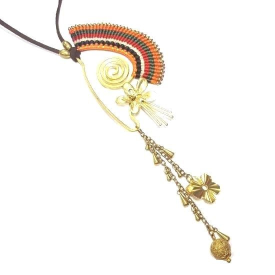 S_600223C - HANDMADE IBIZA ORIGINALS KETTING MET BLAADJE ORANJE/ROOD(1st)